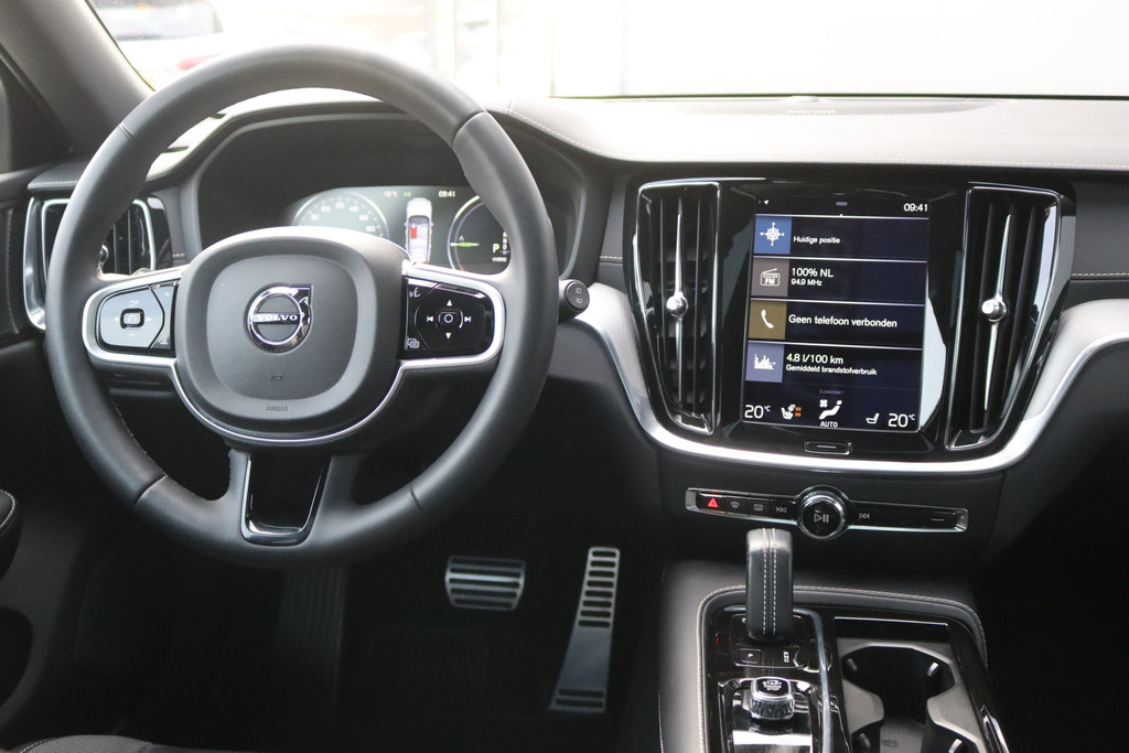Volvo V60 T6 340PK Recharge Plug in Hybrid in de mooie complete en sportieve R-Design uitvoering met vele extra opties.